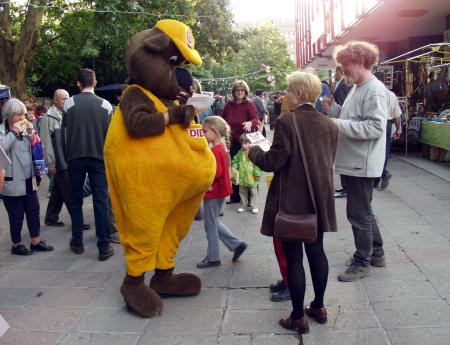 társaságok gyülekezése a Béla téren, majd innen vonulás a Prometheusz