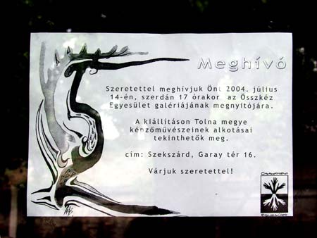2004. július 14. Összkéz Egyesület Galériájának megnyitója Helye: Szekszárd, Garay tér 16 (volt Sulák szőnyegbolt) A kiállításon Tolna megye képzőművészeinek alkotásai tekinthetők meg.