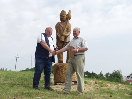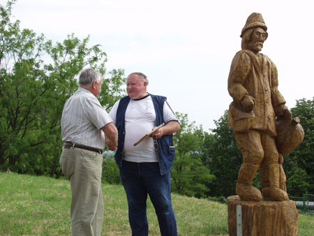 Az alkotásokat átadja: Törő György fafaragó népi iparművész